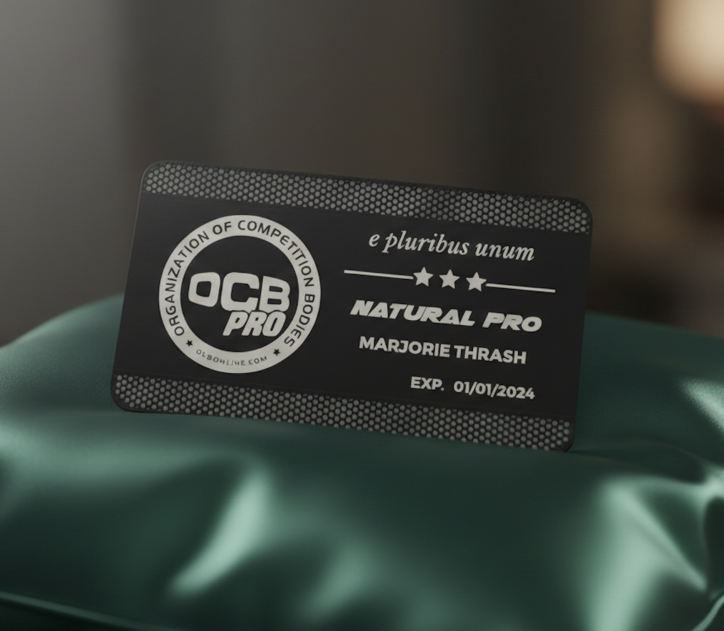 Athletes who qualify as OCB Professional Bodybuilders become eligible for cash prizes, national recognition, and exclusive pro-level events. In addition, each new OCB Pro receives a custom-etched black metallic OCB Pro Card, a lasting symbol of accomplishment in the premier natural bodybuilding organization.